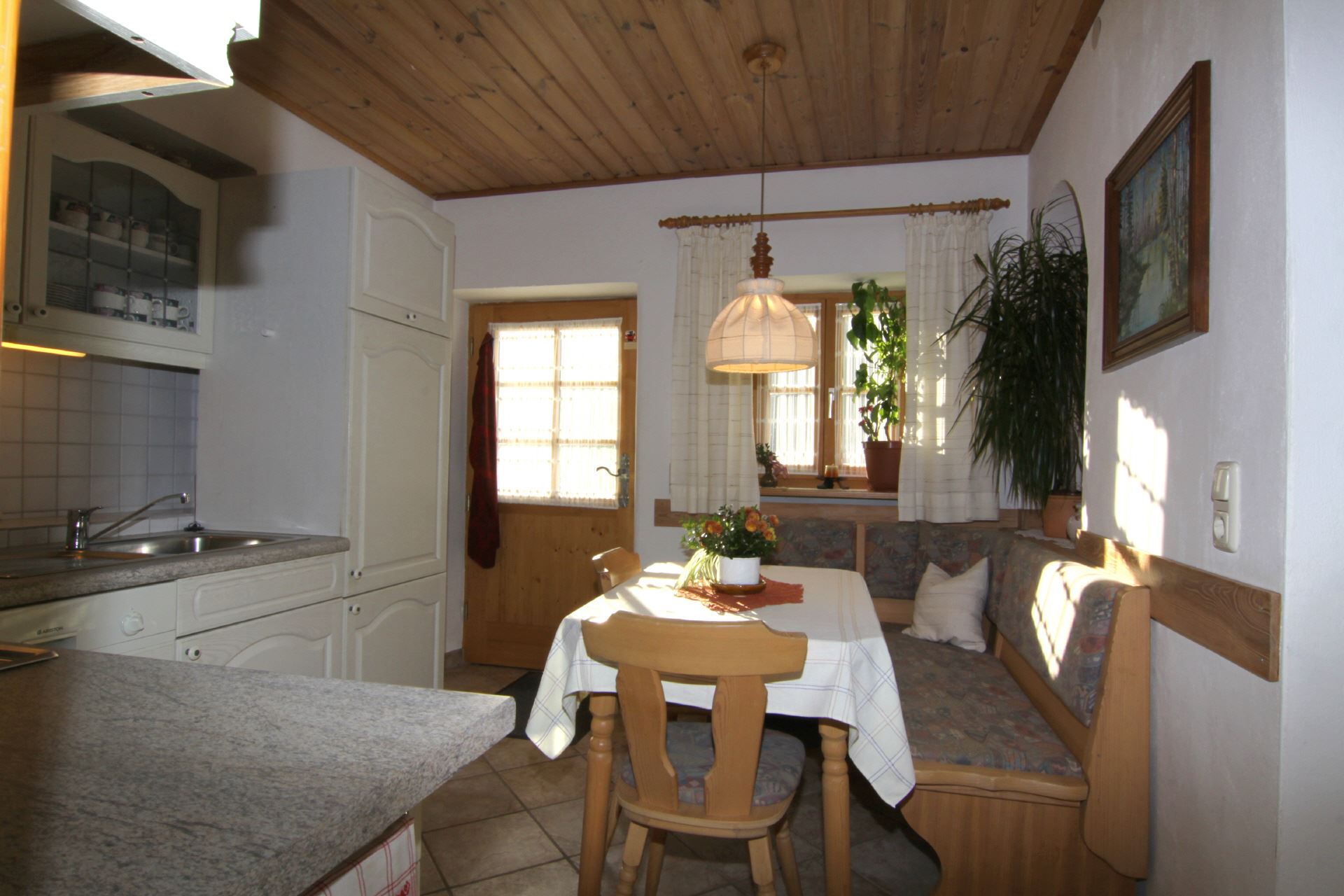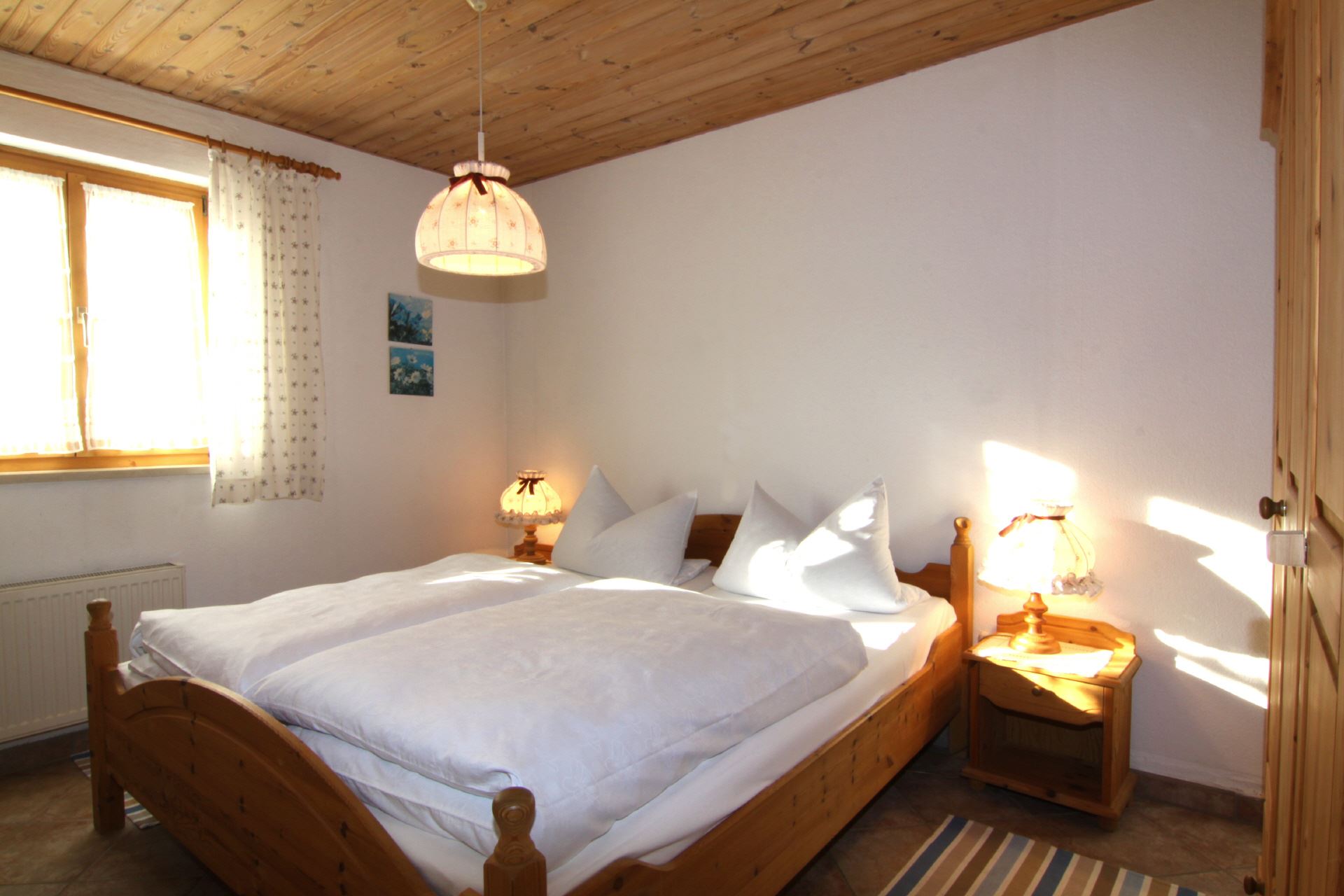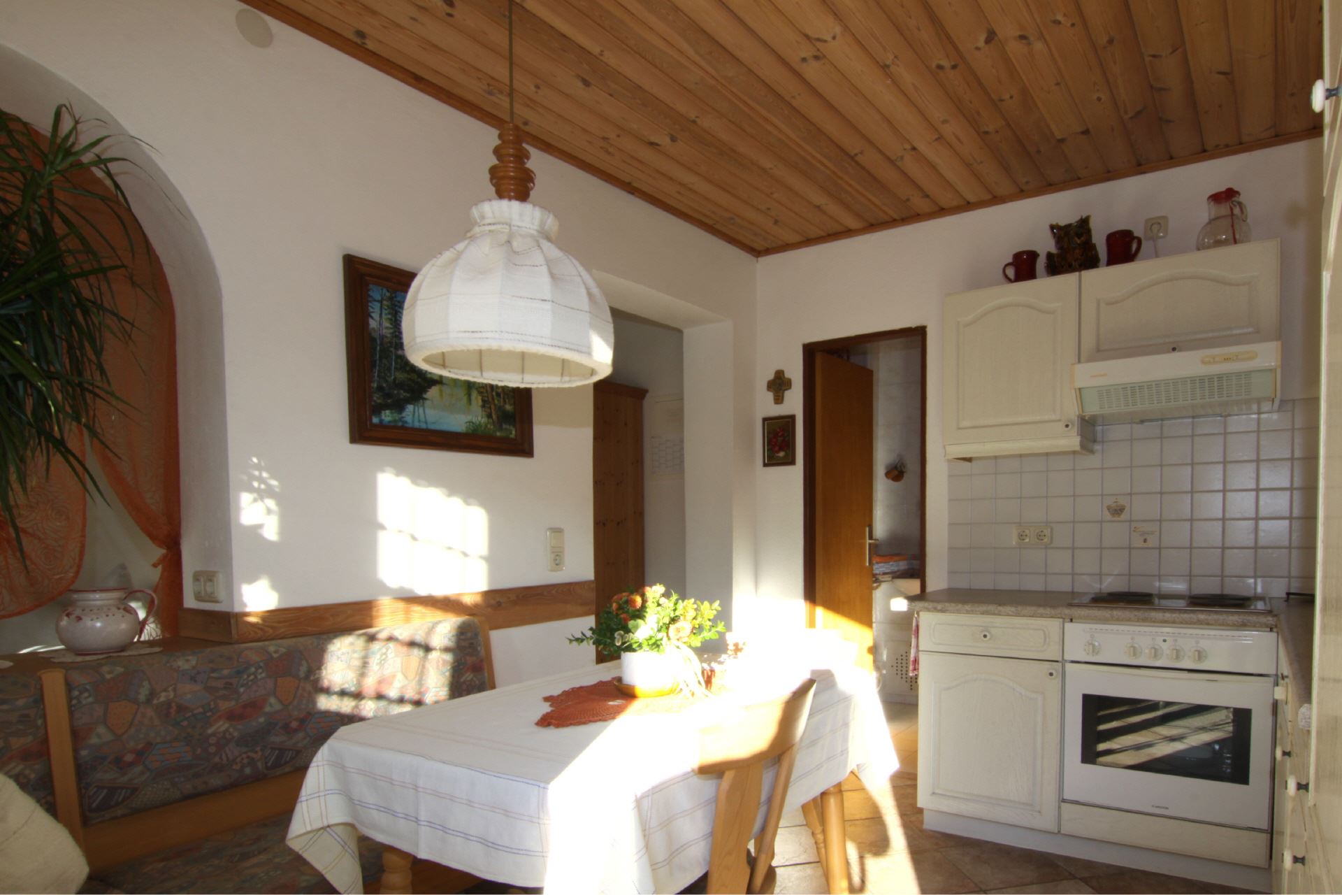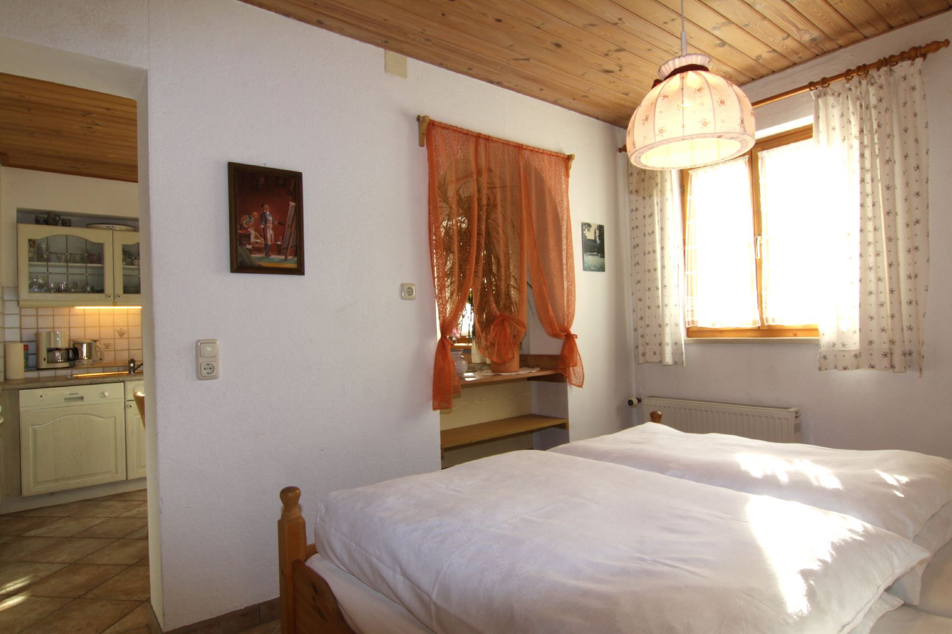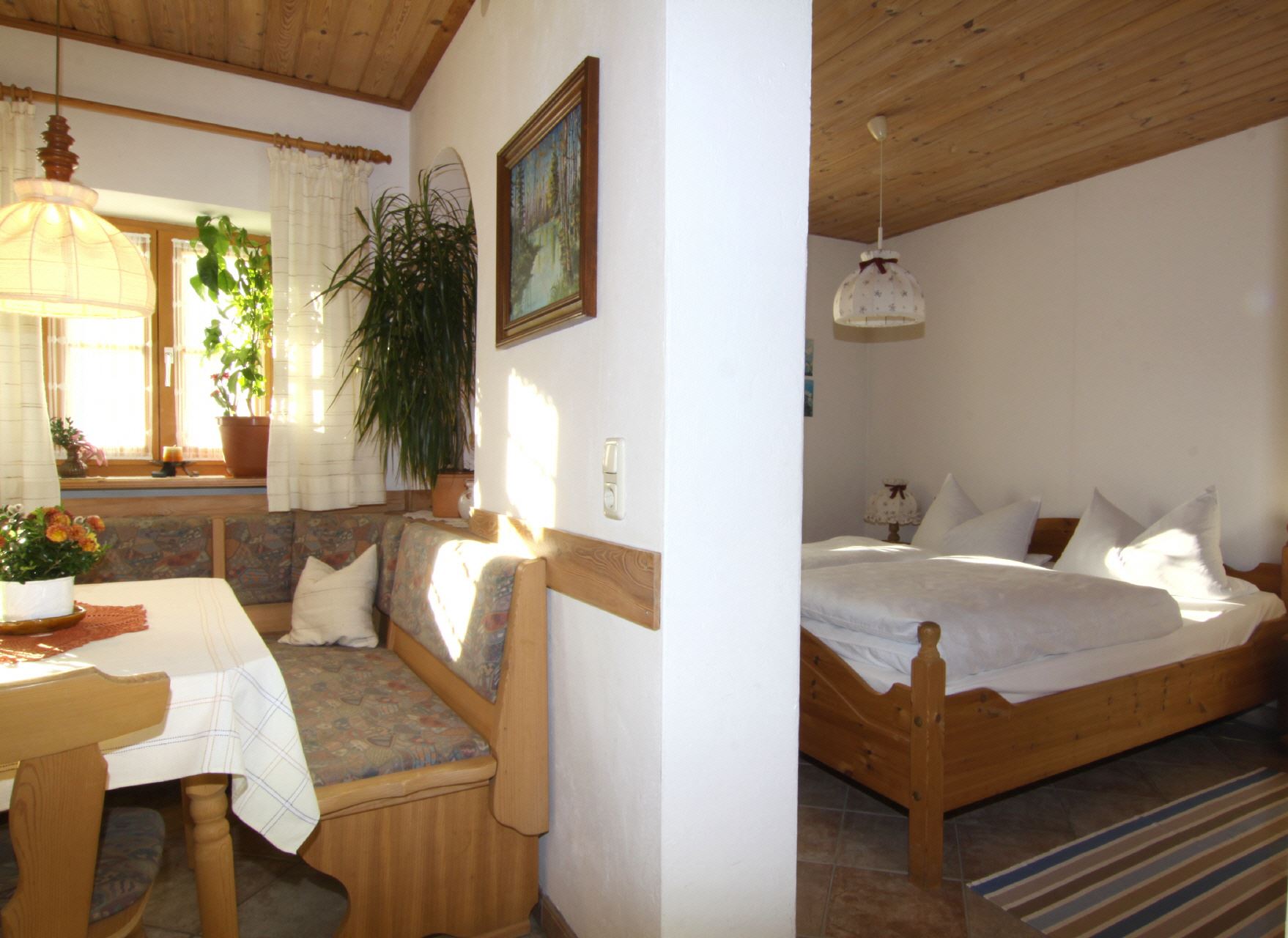 Diese Ferienwohnung befindet sich im Obergeschoss des Hauses und bietet auf ca. 70 m Platz für 2 bis 3 Personen. Es stehen Ihnen 1 Doppelzimmer und 1 Einbettzimmer, eine voll ausgestattete Küche mit Essecke sowie DU/WC zur Verfügung.
