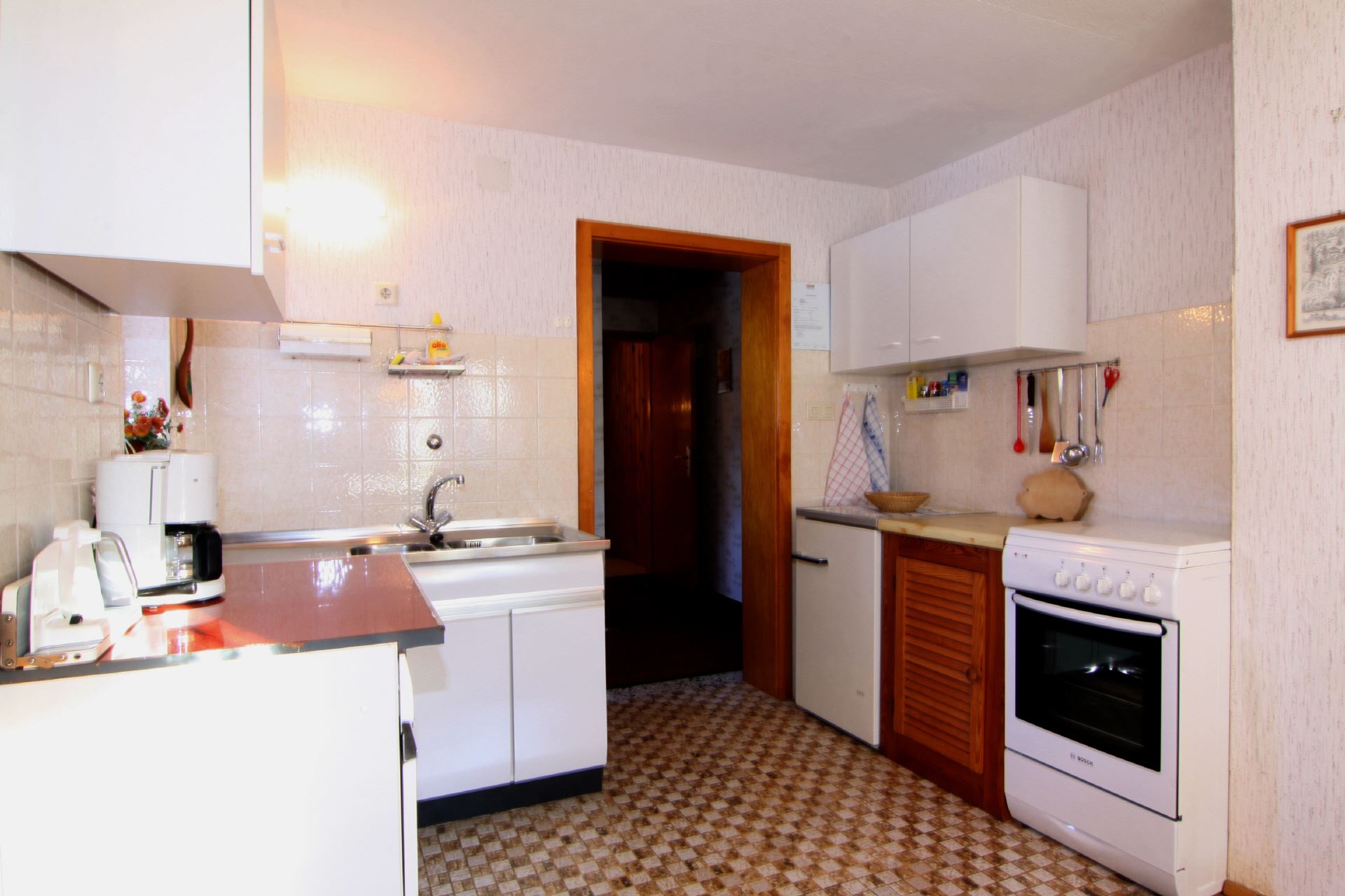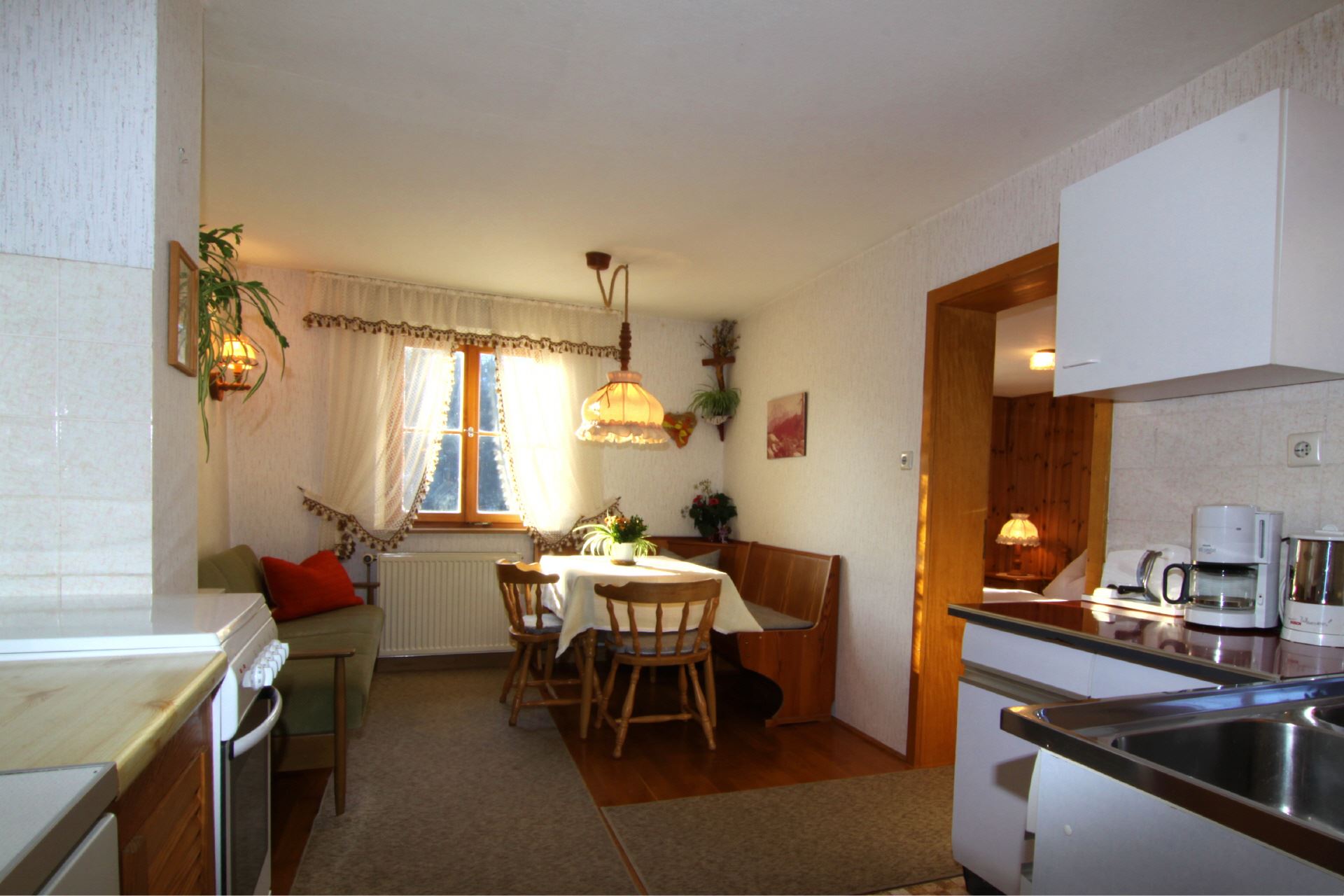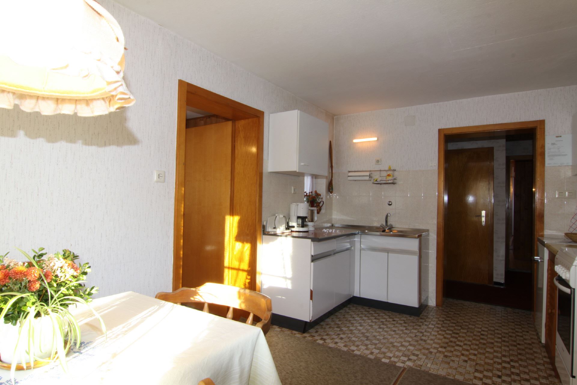 Diese Ferienwohnung befindet sich im Erdgeschoss des Hauses und bietet auf ca. 45 m Platz für 2 Personen. Es steht Ihnen ein Schlafzimmer, eine voll ausgestattete Küche mit Essecke sowie DU/WC zur Verfügung.